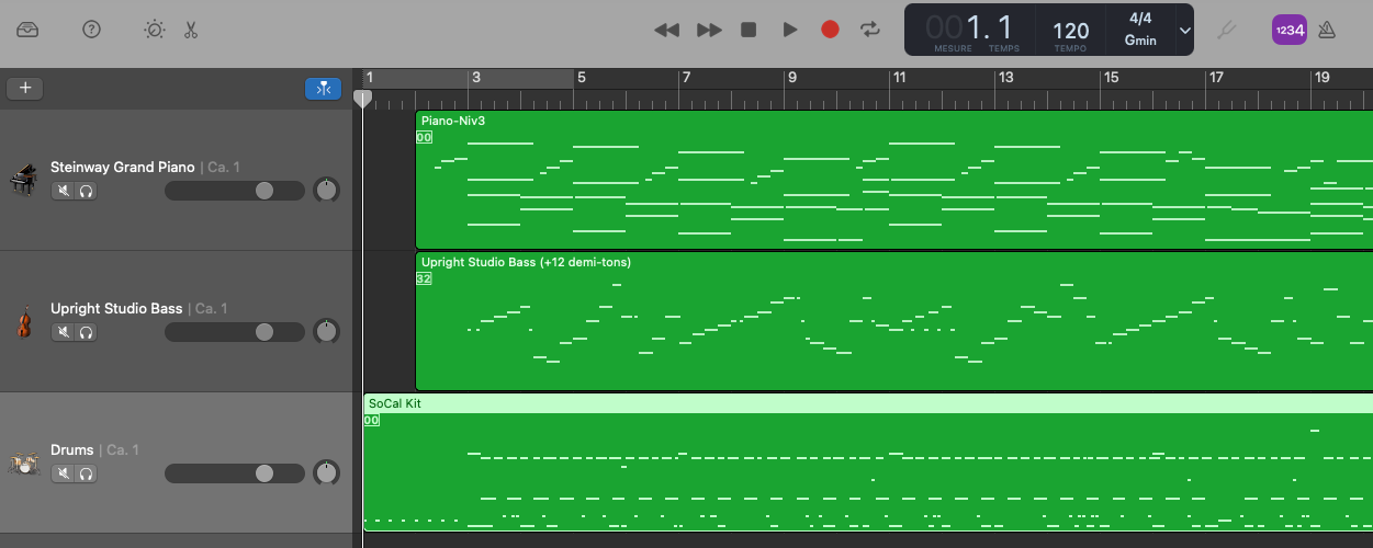 • Midifile piano-Cbasse-batterie simulant un véritable trio pro