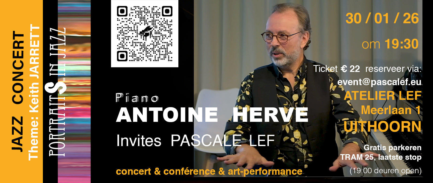 Twee gerenommeerde kunstenaars, multidisciplinair schilder Pascale Lefebvre (LEF) en pianist, componist en dirigent Antoine Hervé, presenteren het leven en werk van de beroemde jazzpianist Keith Jarrett, in english.