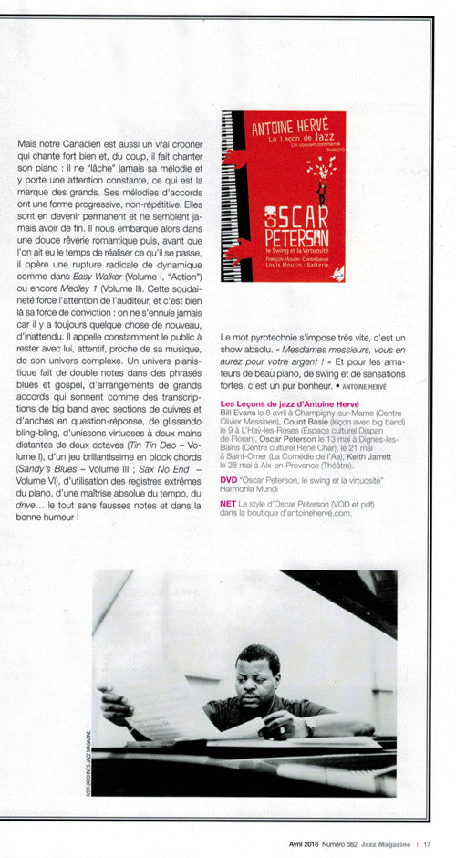 "...the sense of nuance and expression, the humorous and learned deconstruction, turn the lessons dedicated to Oscar Peterson among others, into the purest of gems..." Les Dernières Nouvelles du Jazz - Stéphane Carini