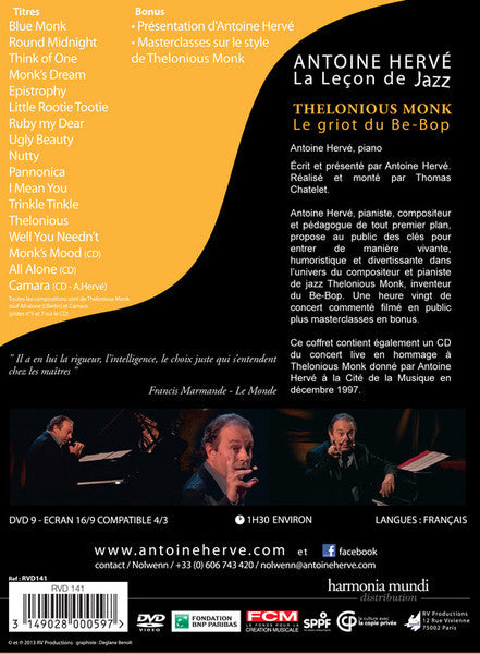 1- Digipack sent by post containing a CD, and a DVD + bonus tracks : An interview of Antoine Hervé + A masterclass on Thelonious' style in french only (no subtitles)