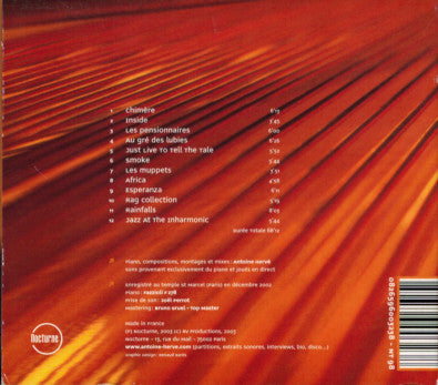 Strings, percussions, whales singings, berimbau, bass guitar, sitar, jew's harp...every sound is sampled from the piano Fazzioli, recomposed and played live by Antoine Hervé.